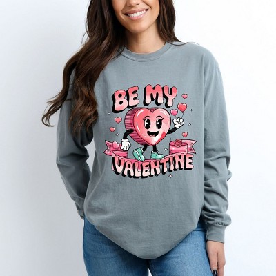 Simply Sage Market Women's Be My Valentine Cartoon Long Sleeve Garment Dyed Tee