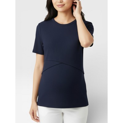 Women's Crew Neck Cross Over Nursing Short Sleeve Top | Motherhood Maternity