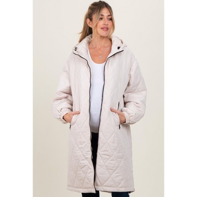 Pinkblush Beige Quilted Long Maternity Puffer Jacket