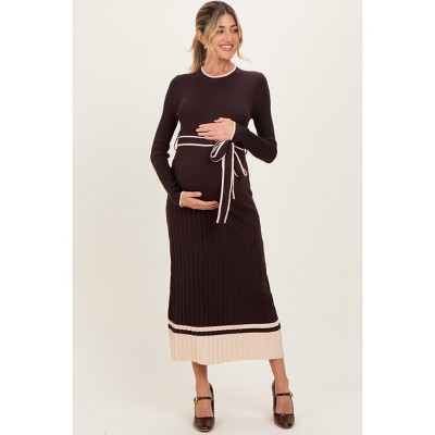 Pinkblush Brown Ribbed Midi Sweater Dress With Belt