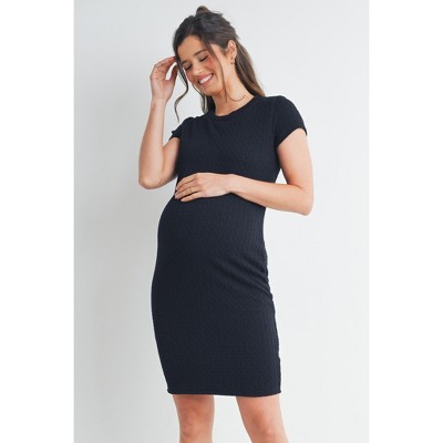 Hello Miz Women's Velvet Smocked V Neck Long Sleeve Maternity Dress