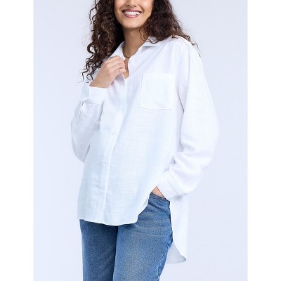 Pinkblush Ivory Plaid Linen Blend Maternity Button Down Shirt
