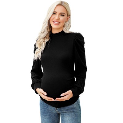 Pinkblush Black Brushed Knit Basic Turtleneck Maternity Top