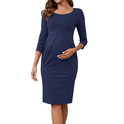 Anna-Kaci Women's Ribbed Knit Maternity Dress with Long Sleeves, Scoop Neckline and Stretch Fit Designed