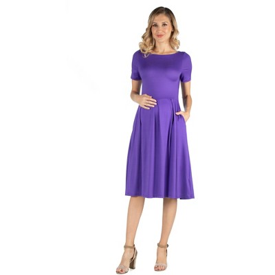 24seven Comfort Apparel Maternity Three Quarter Sleeve Fit and Flare Dress in Grey Print