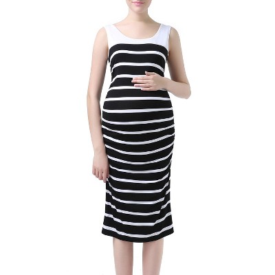 24seven Comfort Apparel Sleeveless Fit N Flare High Low Maternity Dress