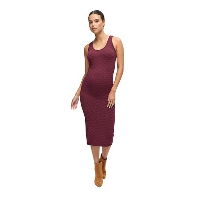 Pinkblush Burgundy Contrast Stitch Maternity Midi Sweater Dress