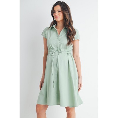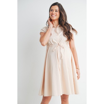 Hello Miz Women's Button Front Empire Waist Tie Maternity Nursing Friendly Dress