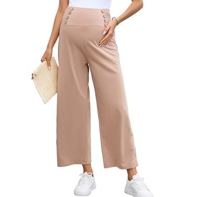 Clearlove Maternity Pants Smocked Smocked High Waisted Double Breasted Waist Casual Wide Leg Palazzo Pants with Pockets