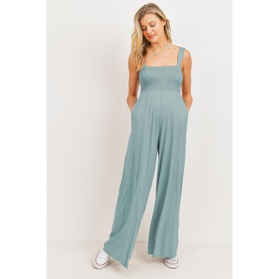 Hello Miz Women's Sleeveless Smocked Neck Maternity Jumpsuit Romper