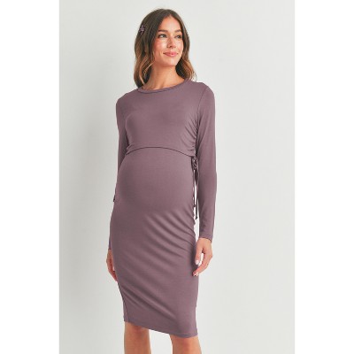 Hello Miz Women's Ribbed Knit Maternity Sweater Dress with Lettuce Hem