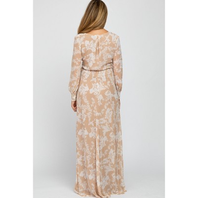 Pinkblush Peach Floral Mesh Smocked Maternity Midi Dress