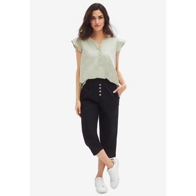 ellos Ribbed Elastic Waist Linen-Blend Capris