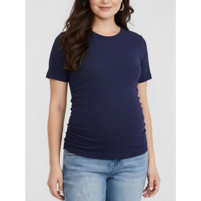 Women's Women's Crew Neck Side-Ruched Maternity Short Sleeve Top | Motherhood Maternity