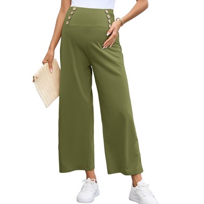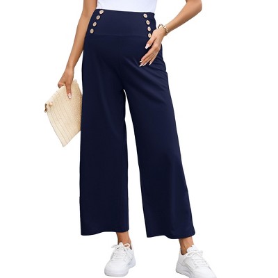 Clearlove Maternity Pants Smocked Smocked High Waisted Double Breasted Waist Casual Wide Leg Palazzo Pants with Pockets