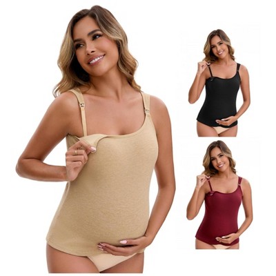 INSPIRE CHIC Women's 3 Packs Maternity Thermal Tank Tops with Built-In Bra with Adjustable Straps