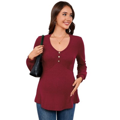 Coolmee Womens Maternity Tops Long Sleeve Pregnancy Tunic Blouses Button V Neck Ribbed Shirts Pregnant Clothes