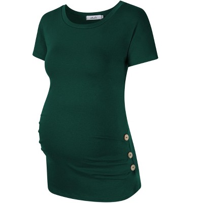 Maternity Shirt Side Button and Ruched Maternity Tunic Tops T-Shirts