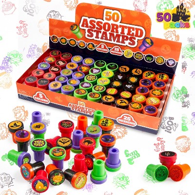 Joyfy Halloween Party Favor 50 Pcs Kids Self Ink Stamps 25 Designs Trick or Treat Assorted Plastic Stamps for Halloween Goodie Bag Fillers Game Prizes