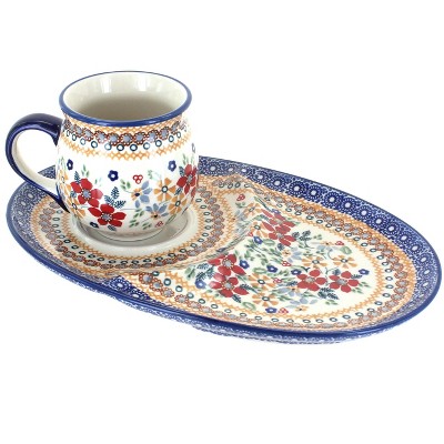 Blue Rose Polish Pottery P006-K090 Manufaktura Breakfast Plate & Bubble Mug Set