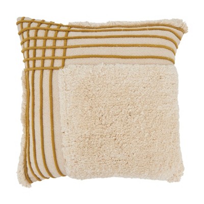 Saro Lifestyle Crosshatch Pattern Tufted Down Filled Throw Pillow, Beige, 20"x20"