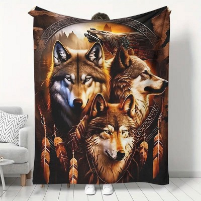 Lomsoe Wild Wolf Pattern Blanket Warm Flannel Blanket Perfect for Bed, Travel, Camping, Living Room,Christmas Gift.