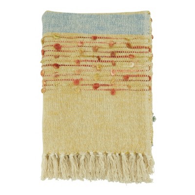 Storied Home Soft Woven Cotton Throw with Tufted Dots and Tassels, Multicolor