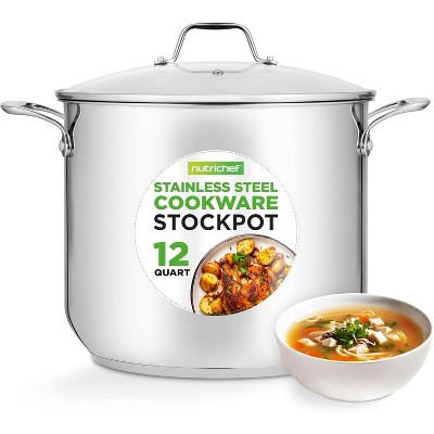 NutriChef 12-Quart Stainless Steel Stock Pot - 18/8 Food Grade Steel Heavy Duty