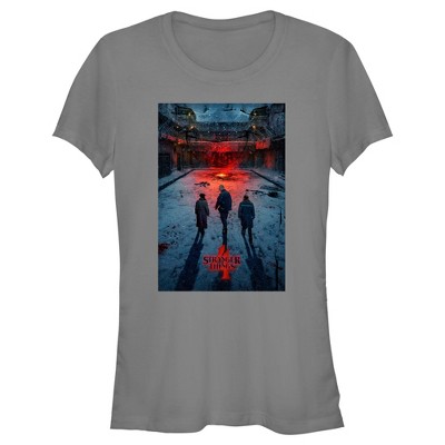 Juniors Womens Stranger Things Four Friends Rift Apocalypse Poster T-Shirt