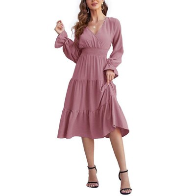 Coolmee Women's Bohemian Dress Casual Long Sleeve V Neck Dress Floral Flowy Maxi Dresses Tiered Cocktail Dress