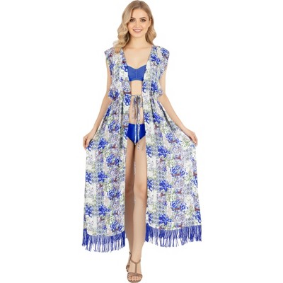 LA LEELA Women's Summer Open Front Swim Suit Coverups Soft Beach Vacation Beachwear Long Bathing Suit Duster Cardigan M-L Blue, Solid