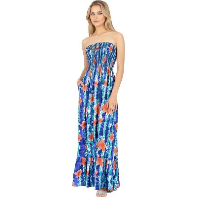 LA LEELA Womens Tube Dress Top Flowy Maxi One Size Horizon Floral Stripes