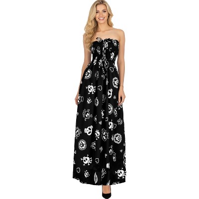 LA LEELA Women's Beach Pirates Evening Party Halter Caribbean Pirate Maxi Dress Tube Top Sundress for Women One Size Skull Vintage Black