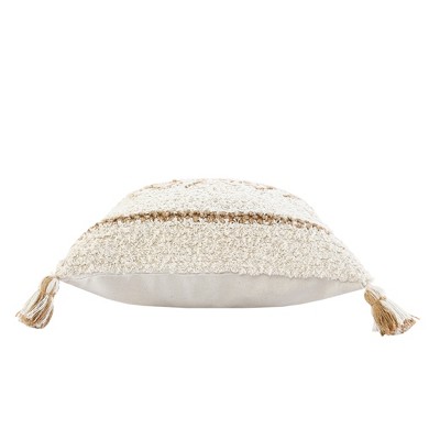 20" X 20" White And Tan 100% Cotton Geometric Zippered Pillow