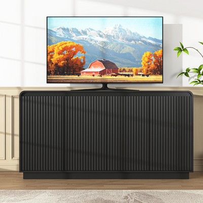 JVNOXK Black 4-Door Fluted TV Stand with Power Outlet, Handleless Wave Entertainment Center, Adjustable Shelf Media Console
