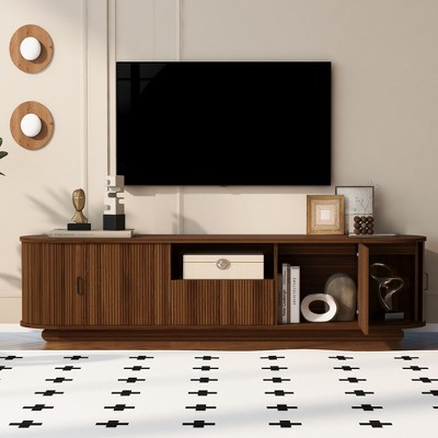 Farmhouse Farmhouse TV Stand for 70 Inch TVs, 65 In Long Entertainment Center w/ 2 Door &Open Storage Shelf, Rustic Fluted Television Consoles Stands