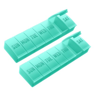 7 Day Pill Organizer, Weekly Medicine Pill Organizers, Pills Box, Travel Case for Vitamin Supplements, Fish Oil, Cyan, 2 Packs