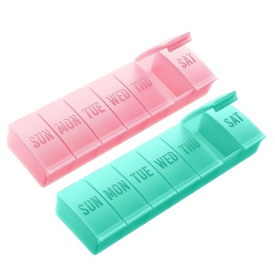 Weekly Pill Organizer 7 Day, Travel Pill Case, Pill Holder for Vitamins, Supplements, Medicine Pill Organizer, Blue & Pink, 2 Packs