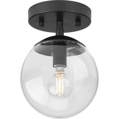 Progress Lighting Atwell 1-Light Flush Mount Ceiling Light in Matte Black with Clear Glass Globe Shade
