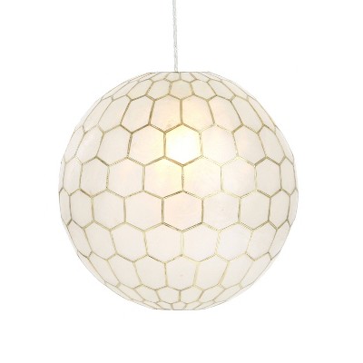 Storied Home Capiz Honeycomb Globe Pendant Light Capiz White Seashells