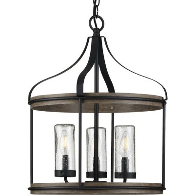Progress Lighting, Hemsworth Collection, 4-Light Pendant, Black Finish, Aged Oak Frame, Barn-Inspired Design
