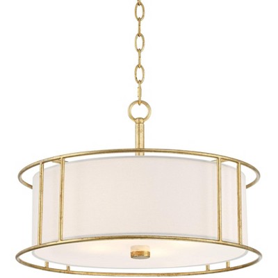 Possini Euro Design Layne Brushed Nickel Pendant Light 19 1/4" Wide Modern Organza Outer Glass Inner Drum Shade for Dining Room House Kitchen Island