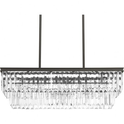 Progress Lighting Glimmer 4-Light Square Linear Chandelier, Antique Bronze, Prismatic Glass Shade