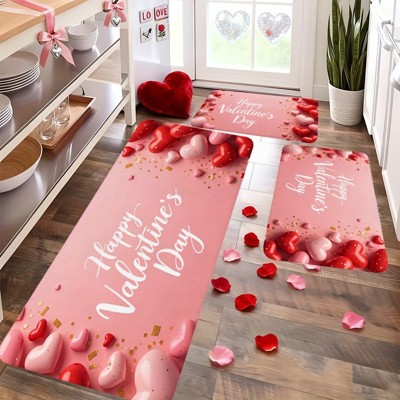 Lomsoe 3pcs Valentine'S Day Kitchen Mat Set with Heart-Shaped Decorative Patterns, Suitable for Kitchen Doorways, Bathroom Entrances.