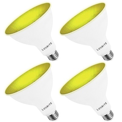 Luxrite LED PAR38 Flood Yellow Light Bulb, 8W=45W Equivalent, Damp Rated, UL Listed, E26 Base, Indoor Outdoor, Decoration, Home Lighting 4 Pack