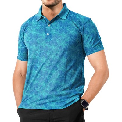 HAPPY BAY Mens Golf Shirts Polo Men Shirt Short Sleeve Dri Fit Polos Men's Wicking Collar Dress Summer T-Shirts for Men S Blue, Floral