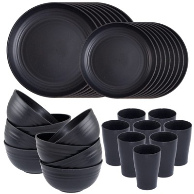 Basicwise 24-Piece Kids Dinnerware Set Plastic 4 Plates, 4 Bowls, 4 Cups, 4 Forks, 4 Knives, and 4 Spoons