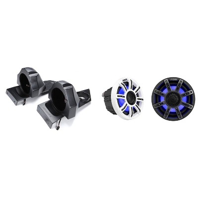Kicker Marine KPX300.4 Powersports Amp & 6.5", 8" HLCD Marine LED Speakers (Includes LED Remote )