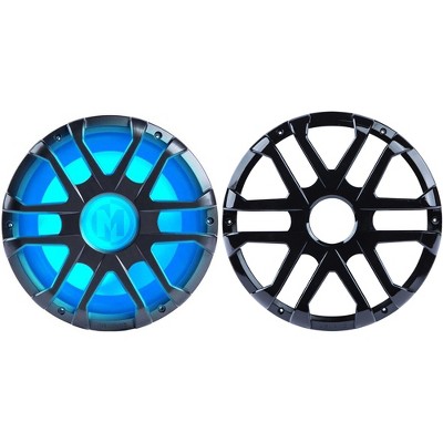 Memphis Audio MM1224 12" Marine Subwoofer with Integrated RGB LEDs and 2 or 4 Ohm Selectable Impedance with MXA12GB Black 12" MXA Subwoofer Grill