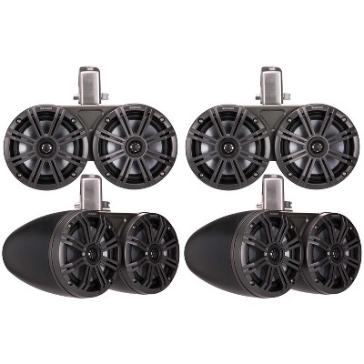 Kicker (2 Pair ) 45KMTDC65 Marine Tower Speakers with Swivel Clamps & 45KM654L Speakers Charcoal Grills with Black Enclosures